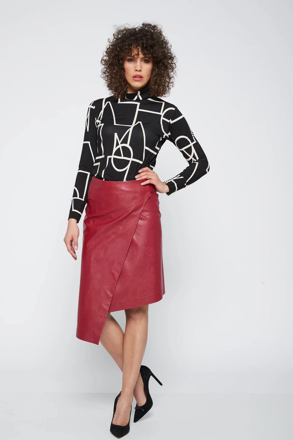 Sötétpiros műbőr szoknya