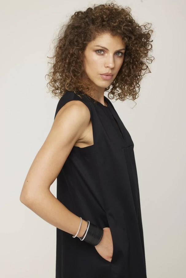 A tavaszi-nyári szezon legnépszerűbb darabja, mert könnyed, elegáns, természetes az alapanyaga és letisztult a szabásvonala. Selyemfényű, pamut szaténvászonból készült, zsebes, ujjatlan térdig érő modell. Elérhető többféle élénk és kevésbé élénk színben és három méretben. Ennél a modellnél a mellbőséget érdemes figyelembe venni, mert "A" vonalú fazon és a csípő rejtve marad. Ruhatárad alapdarabja lehet, bármilyen eseményen megállja a helyét, és garantáltan magabiztosnak, csinosnak érzed magad benne. Bármilyen méretben rendelhető. |