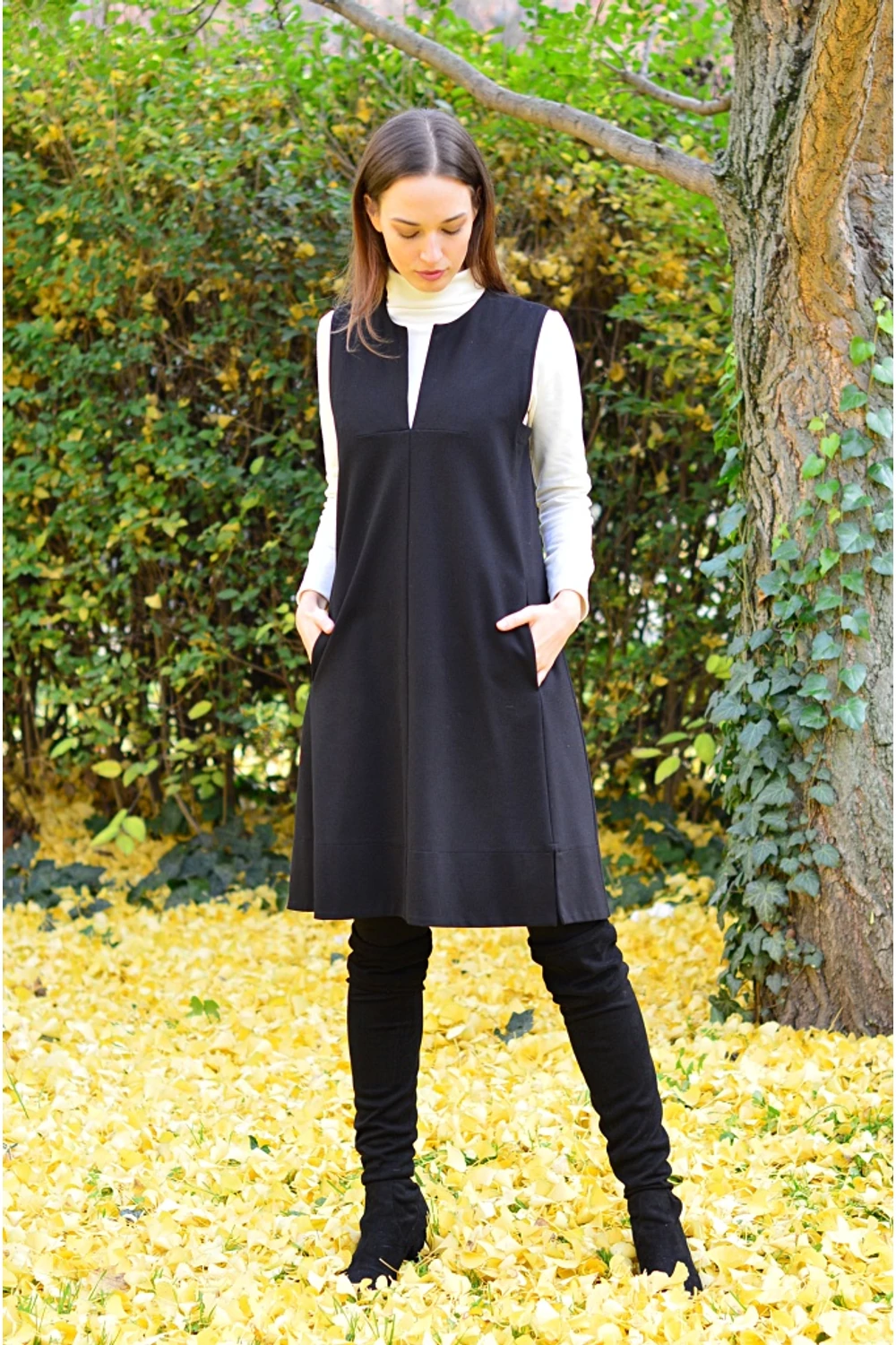 A tavaszi-nyári szezon legnépszerűbb darabjának őszi-téli változata ez a ruha. Könnyed, elegáns, letisztult a szabásvonala, alapdarabja lehet ruhatárunknak. Kevertszálas, magas viszkóz tartalmú anyagból készült, zsebes, ujjatlan térdig érő modell. Elérhető fekete, sötétszürke és sárga színekben, három méretben. |
